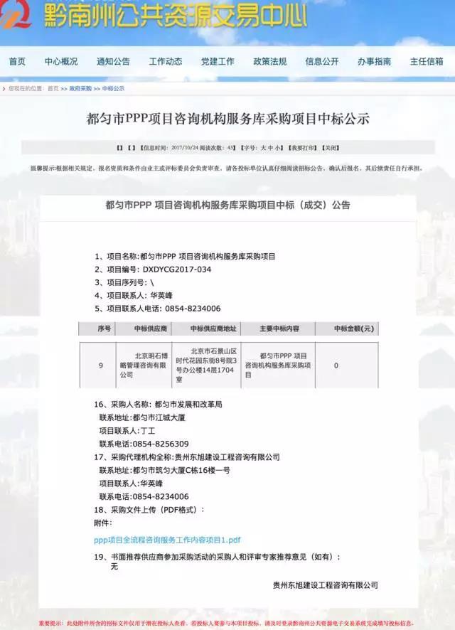 近日,为积极发挥第三方专业机构作用,提高政府和社会资本合作(PPP)项目的质量与效率,都匀市发展和改革委员会公开招纳政府和社会资本合作(PPP)项目专业咨询机构库,明石博略凭借自身丰富的PPP项目案例以及优良的信誉一举中标。 本次都匀市政府和社会资本合作(PPP)项目专业咨询机构库招标经过资格...